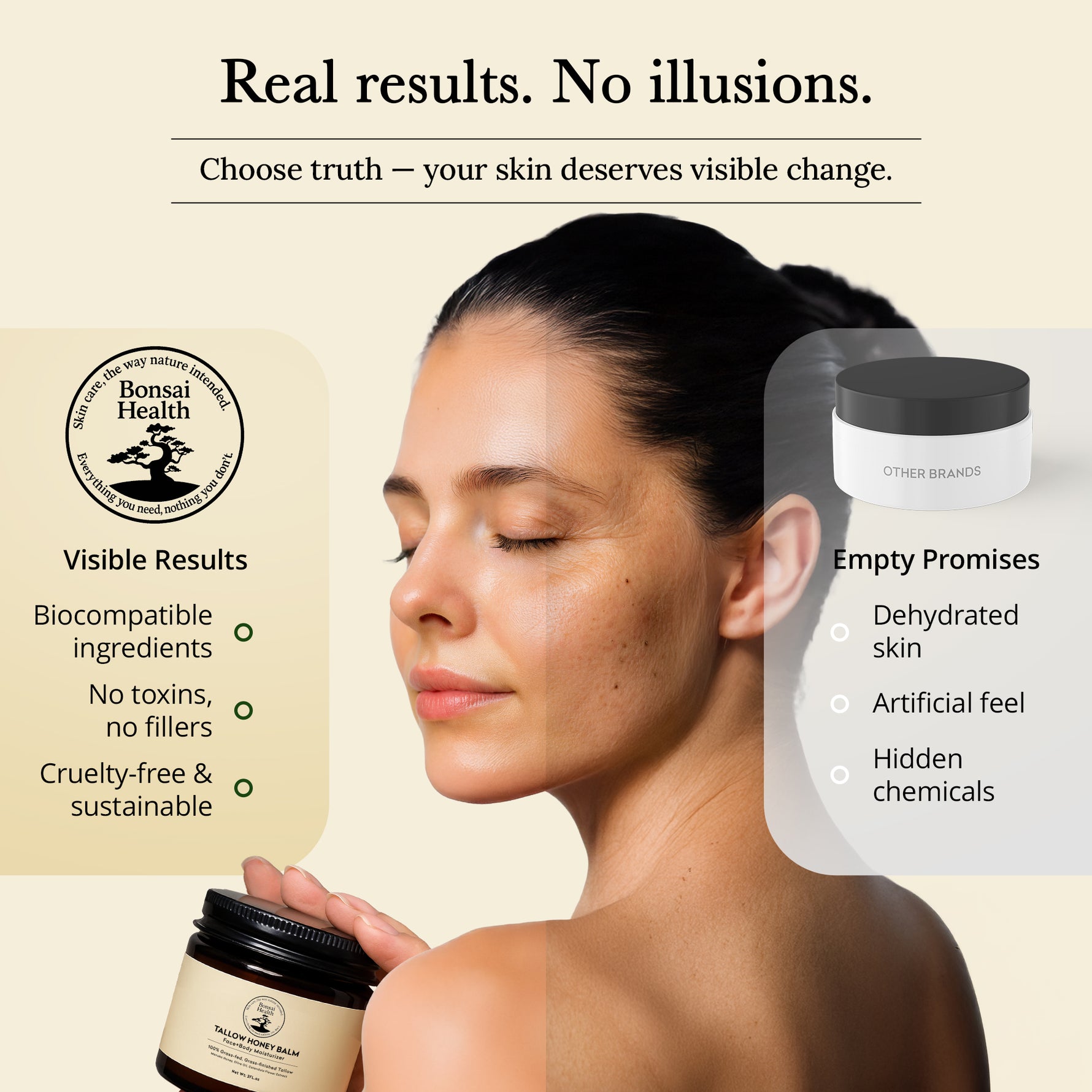 It might sound old-fashioned, but tallow has been trusted for centuries — and for good reason. Grass-fed beef tallow closely matches your skin’s own sebum, meaning it absorbs easily and delivers vitamins A, D, E, and K directly where your skin needs them most. It helps strengthen your skin barrier, reduce dryness, and improve elasticity — naturally.